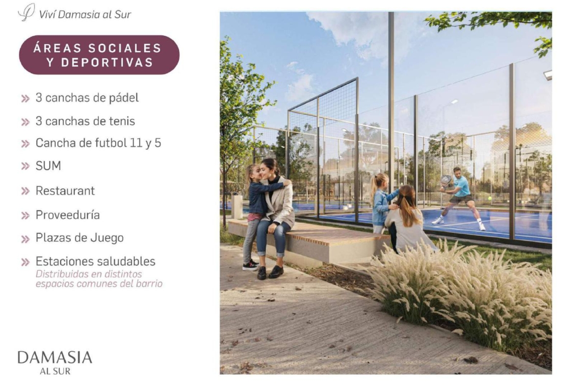 – Internet por fibra óptica- Seguridad 24hs- Cancha de fútbol – Cancha de Paddle- Cancha de tenis – Restaurante- Proveeduría – Plaza de Juegos