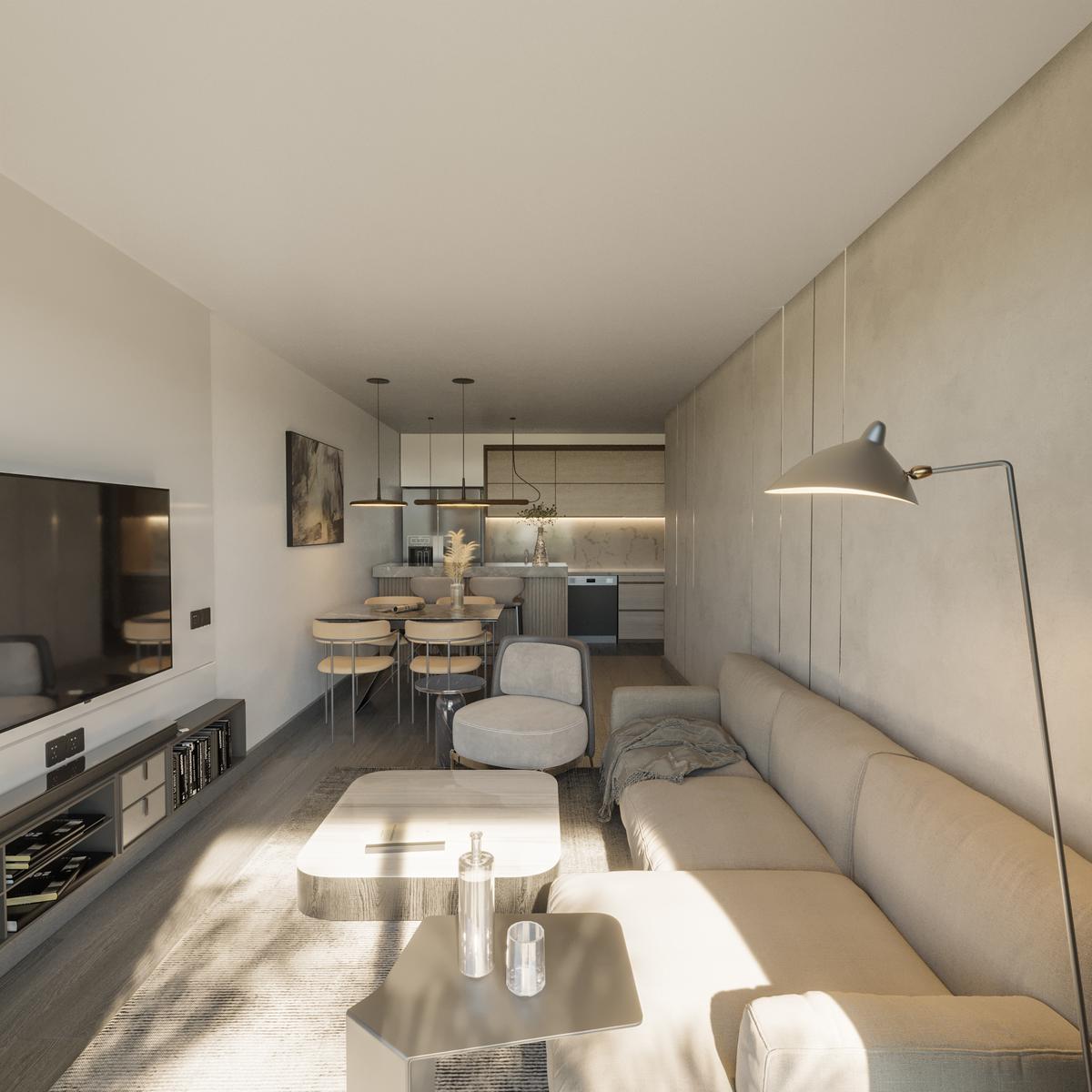 El edificio se destaca por su diseño contemporáneo, con un frente que combina la solidez del hormigón y la elegancia del hierro negro.Las líneas minimalistas estructuran la fachada, creando una estética limpia y moderna que prioriza la funcionalidad y el equilibrio visual.El hormigón aporta un carácter robusto y atemporal, mientras que los detalles en hierro negro añaden sofisticación y contraste, logrando un diseño arquitectónico que dialoga con su entorno urbano. Las ventanas de gran tamaño integran luz natural en los interiores y acentúan las líneas horizontales y verticales del edificio. Este proyecto refleja una perfecta armonía entre materiales industriales y una visión arquitectónica vanguardista.